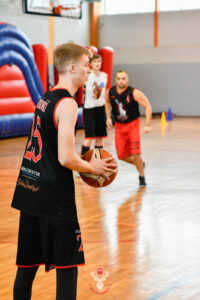 Zacznę od tego, że przywieźliśmy ze sobą liczną grupę wsparcia, która zdominowała trybuny i głośnym dopingiem niosła nas w każdej akcji. Niemal 20 naszych podopiecznych zakończyło swój pierwszy Basket Camp, pod banderą Krajna Basket. GORĄCE podziękowania za Wasz doping! Wracając do meczu…