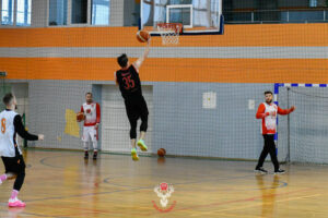 W drugiej i trzeciej kwarcie, zdobycze punktowe rozłożyły się na całą naszą drużynę. W obronie staraliśmy się zatrzymać jednego gracza… Grzegorz Przewoźniak, zdobywca triple double ciągnął cały atak pilan w tym czasie. Nie miał łatwo, bo w obronie stało się coś co normalnie nie występuje w takich spotkaniach. Piotr Rybarczyk (Ryba) na doświadczonych ligowo rywalach, zanotował 10 bloków w całym meczu WOW albo Wemby :)!  Obie kwarty wygrywamy i wychodzimy na prowadzenie 65:64.