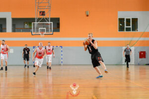 Dzisiaj skład może nie najmocniejszy, ale jak na ten sezon solidny. Pierwsza kwarta jeszcze nie zapowiadała takiego wyniku meczu bo wynik był bliski remisu. Zaczęliśmy spokojnie a Ryba systematycznie kończył swoje akcje dające nam przewagę w pierwszych minutach meczu. Człuchowianie szybko dostosowali się do naszej strategii robiąc roszady w obronie i tak rozpoczęły się nasze problemy.