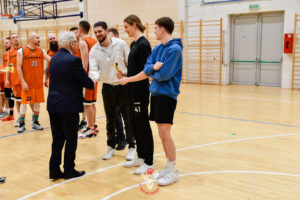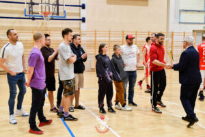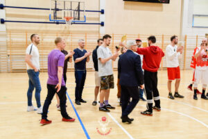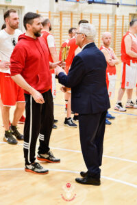 Po naszym spotkaniu rozegrany został finał, który był meczem godnym tej rangi. W spotkaniu zmierzyli się ze sobą Człuchowskie Byki i Profil Piła. Kto nie widział niech żałuje. Mecz do ostatniej minuty łeb w łeb, a o wygranej zadecydowała jedna akcja w ostatniej minucie. Pojedynki indywidualne liderów – Grzegorzów na swoich pozycjach były ozdobą meczu. Skuteczność Łukasza Krzemińskiego w końcówce spotkania. Pogoń i determinacja Dawida Roszpunda. Kluczowe role zawodników, których zaangażowanie analizując protokołu meczowy można nie zauważyć jak np. Maciej Turtlewski. Jak wspomniałem o wygranej zadecydowała jedna wymuszona strata w ostatniej minucie spotkania. Gdyby piłka adresowana do Grzegorza Skoczyk znalazła odbiorcę, to myślę że to Byki mogłyby cieszyć się z wygranej. Tymczasem pilanie wygrywają 94:90, nie przegrywając w tym sezonie ani jednego spotkania 11:0. Piękne widowisko, duże brawa dla obu ekip i zestawu sędziowskiego!