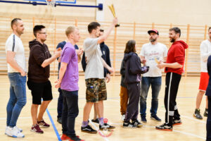 Po przerwie Tuchola zwarła szyki i rozpoczęła gonitwę, aby odrobić straty. Krycie na całym boisku przy dwukrotnej przewadze graczy była jak najbardziej rozsądnym posunięciem rywali. Na ten scenariusz jednak byliśmy przygotowani. Ponownie do akcji wkroczył Cycu i Ryba (12 pkt. 14 zb. 2 bloki) wykorzystując grę 1 na 1, nie dość że nie pozwoliliśmy na odrobienie strat, to jeszcze powiększyliśmy przewagę.