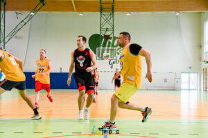 Do grania stanęło 16 zawodników, rozegraliśmy 6 meczów turniejowych, a na koniec dorzuciliśmy mecz w mieszanych składach do 100 punktów. W meczach turniejowych zasada była prosta: każdy trafiony rzut = 1 zł od zawodnika do puszki WOŚP.​